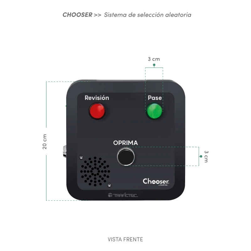 El Chooser de Trafictec es un dispositivo de fácil uso para selección y revisión aleatoria de personal, vehículos o mercancías, que contribuye con la seguridad de las empresas y su personal reduciendo costos y tiempo.