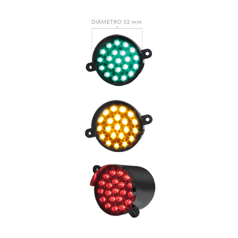 La medida de 52 mm del módulo es el diámetro de la carcasa donde van instalados los LEDs. Todas nuestras lámparas poseen tecnología LED ya que permite una alta intensidad de luz con bajo consumo de energía y una larga vida de operación.