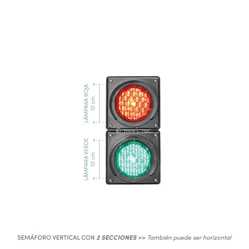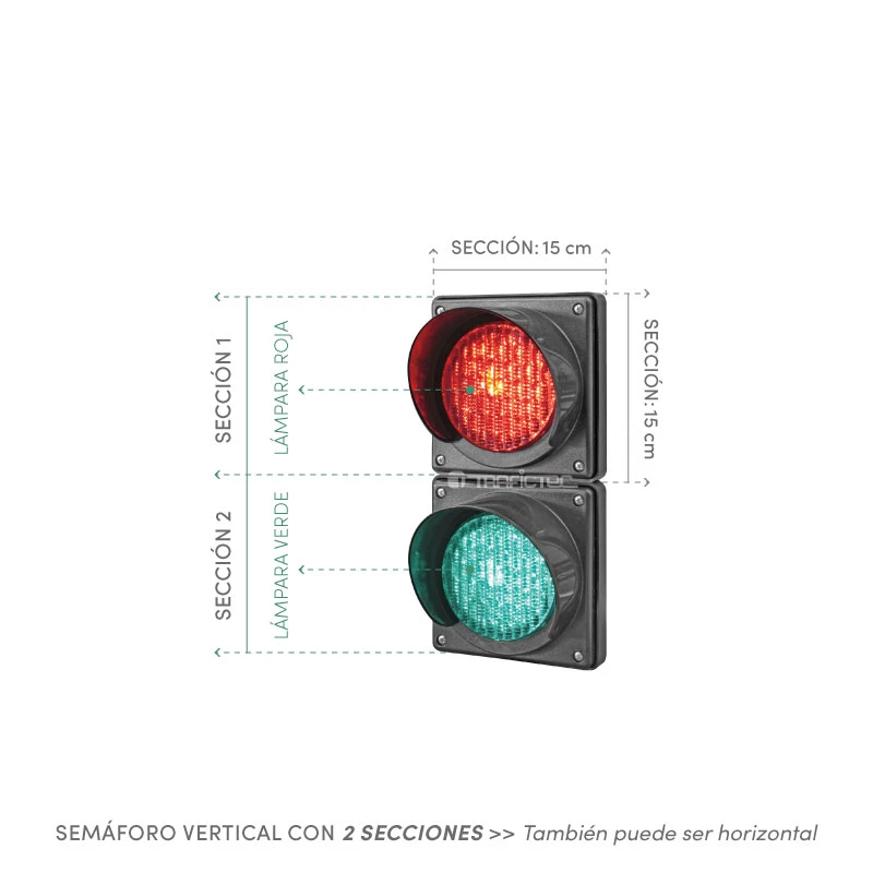 La medida de referencia (10 cm) para el semáforo se toma del diámetro de una lámpara. Trafictec cuenta con las medidas estándar de 30 cm (12"), 20 cm (8") y 10 cm (4") en lámparas LED para semáforos. La tecnología LED permite una alta intensidad de luz con bajo consumo de energía y una larga vida de operación.