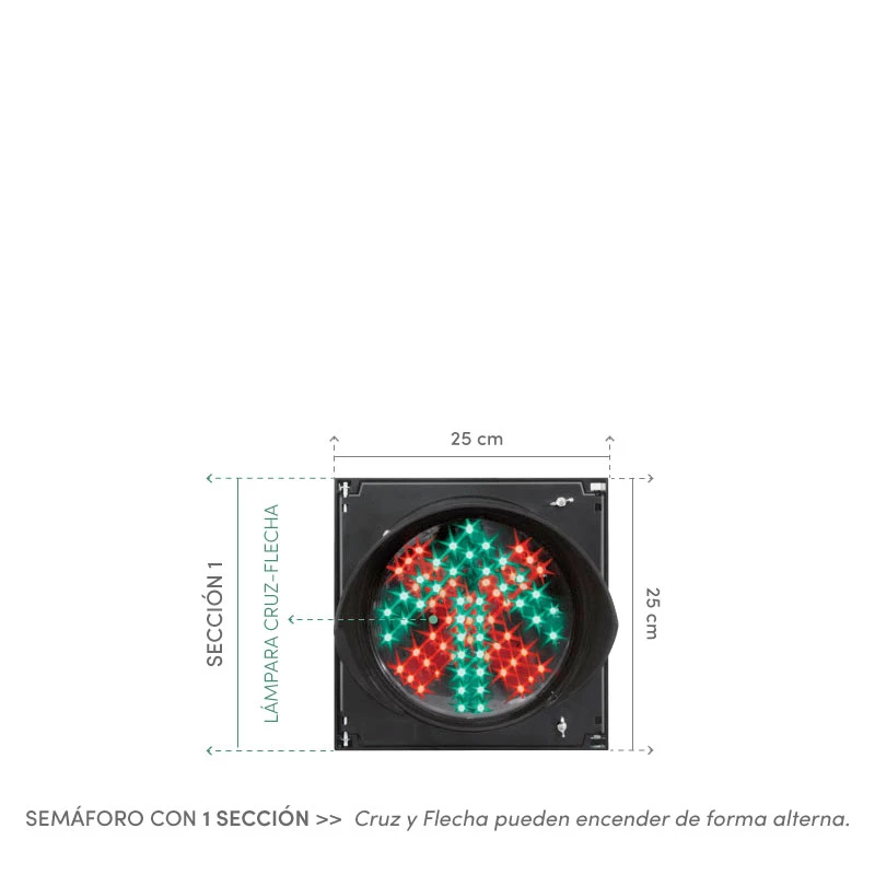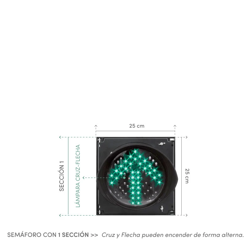 Semáforo LED CRUZ-FLECHA para uso industrial con lámpara de 20 cm